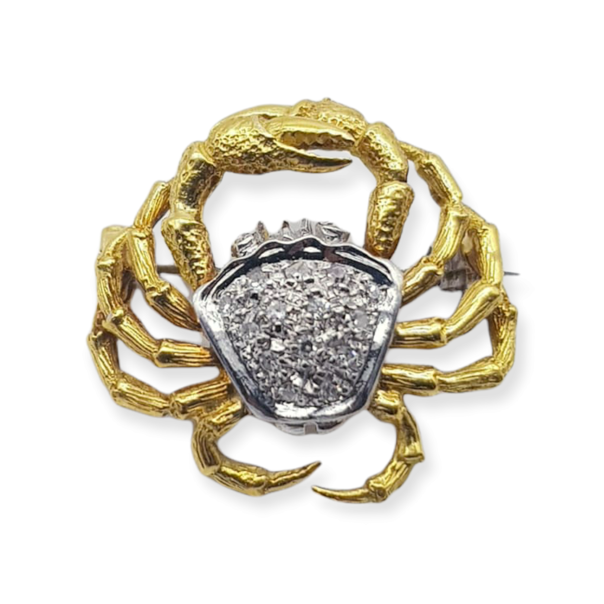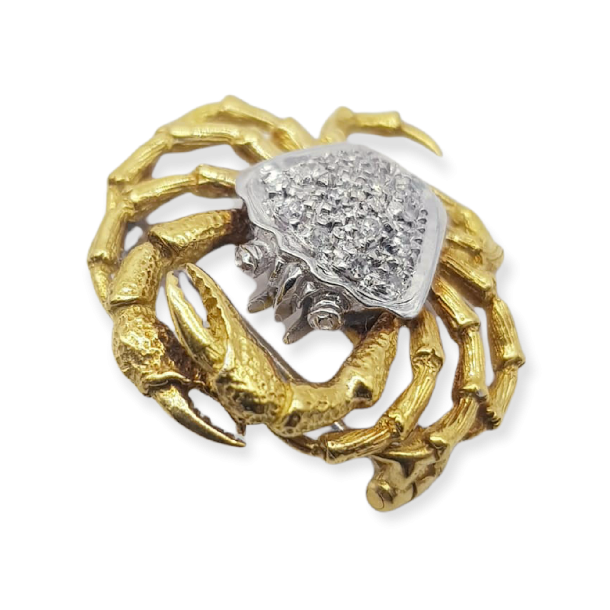 18k Gold Diamond Crab/Cancer pendant. This brooch is so beautifully made in 18k gold yellow and white and has beautiful small diamonds. This brooch can also be turn into a pendant for a small additional fee, just send us a message to speak about it.