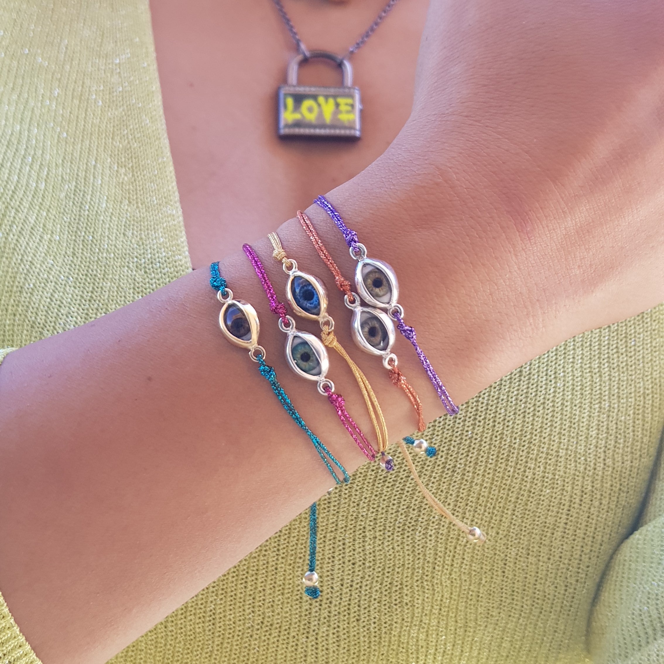 Lucky Eye Bracelet. Metallic glittery thread that makes this super cool bracelet the perfect piece for for everyday wear!
