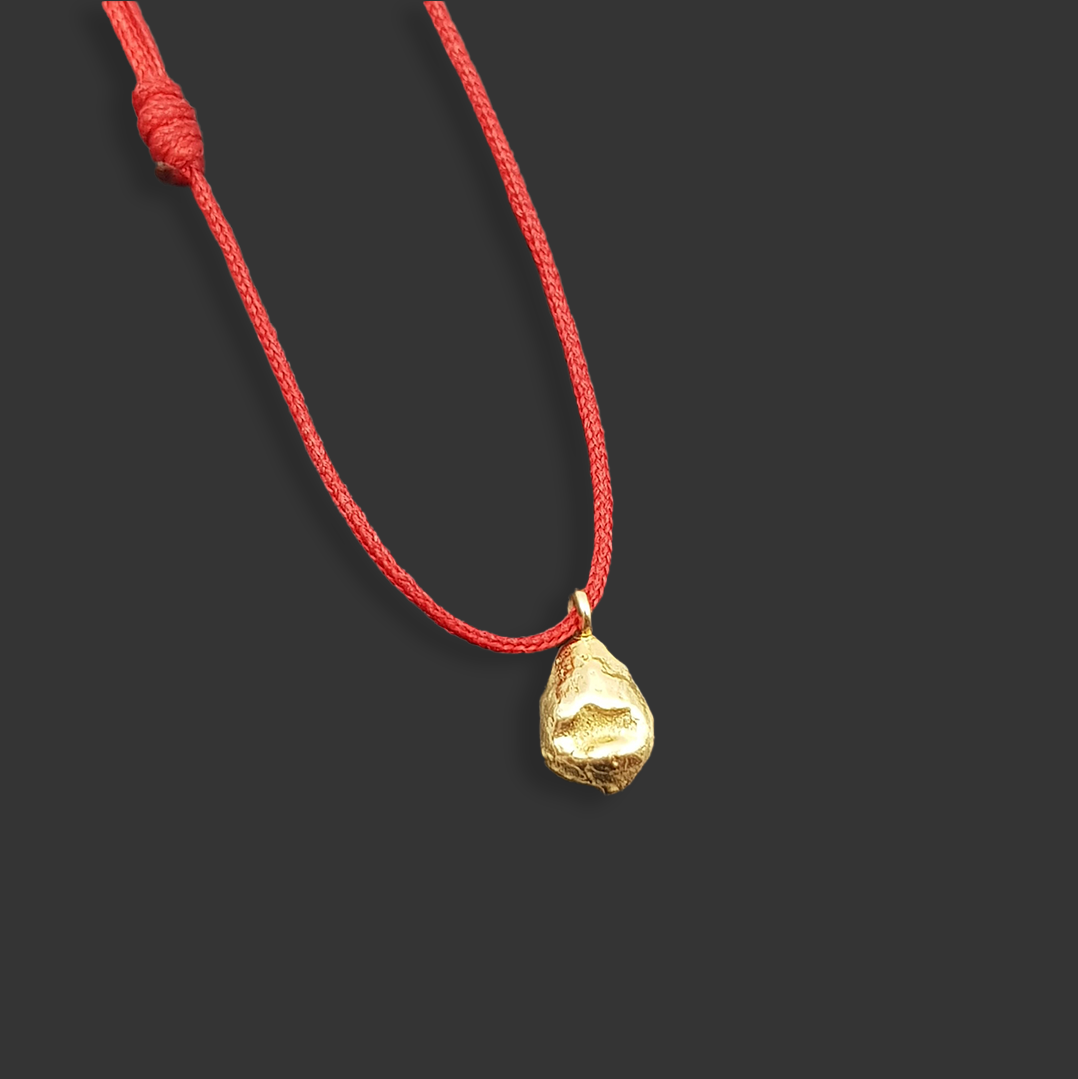 Nugget Cord Necklace. This fun necklace can be order in the color of your choice. The nugget is made of solid, not hollow 18k gold and it also includes a spring clasp in 18k.