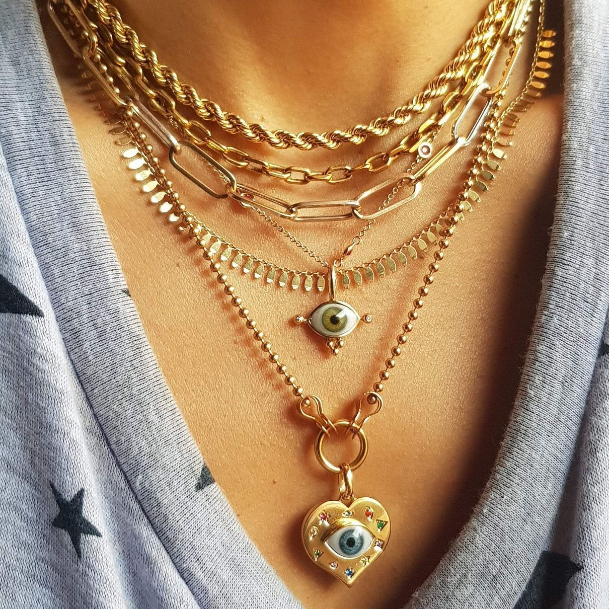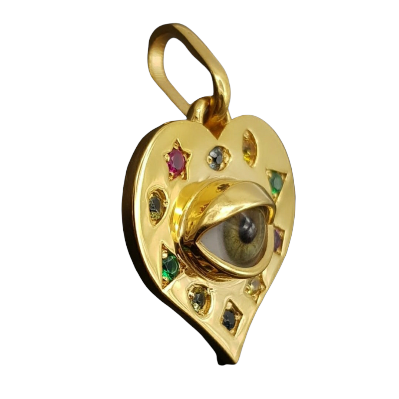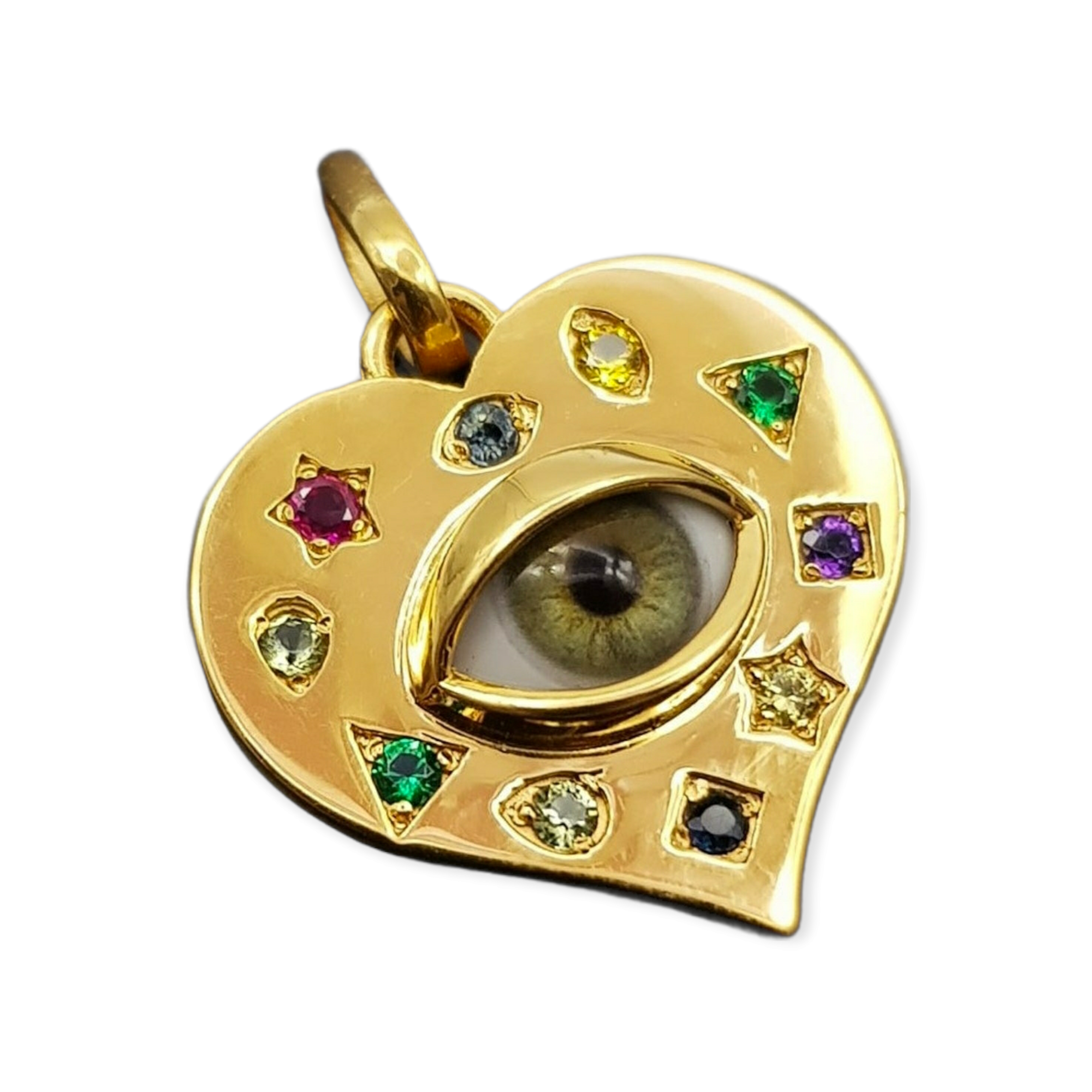 Gold Heart Evil Eye Pendant. Another of our own designs!. Beautiful unique heart eye pendant with natural stones such as tsavorite, ruby, amethyst, citrine.