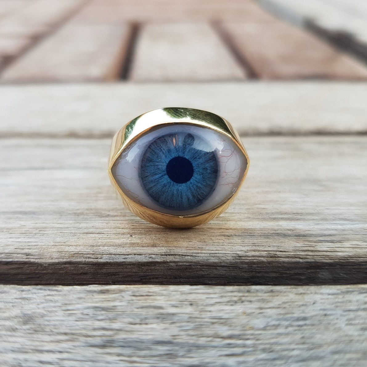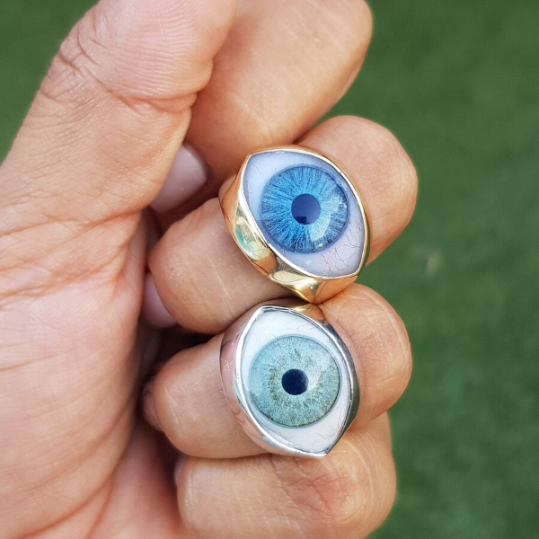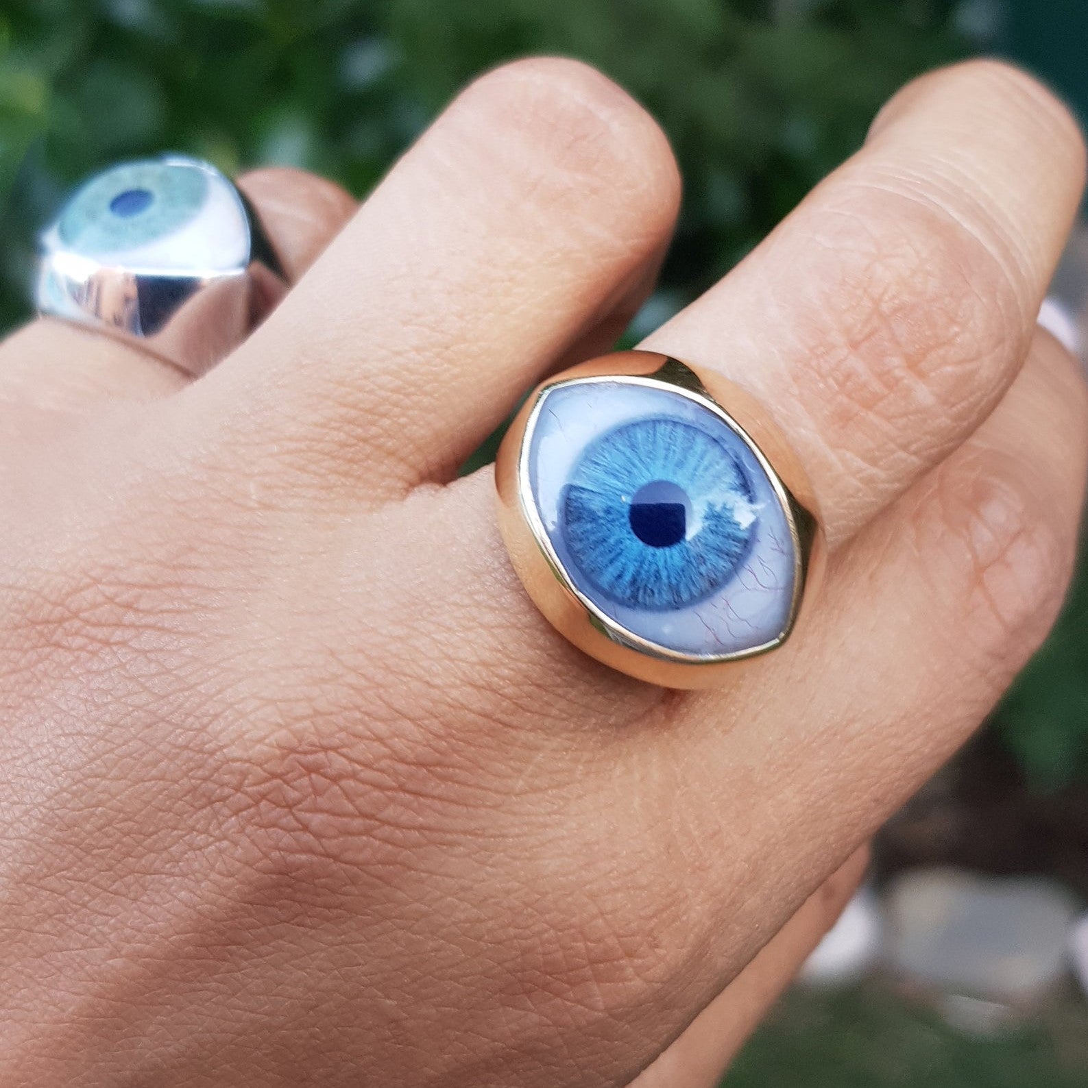 Evil Eye Medium Signet Ring. This beautiful ring is quite a statement. If you love different unique jewelry, then this ring is for you!. This eye ring is made to order in two different materials. This ring is chunky and heavy in both material versions.