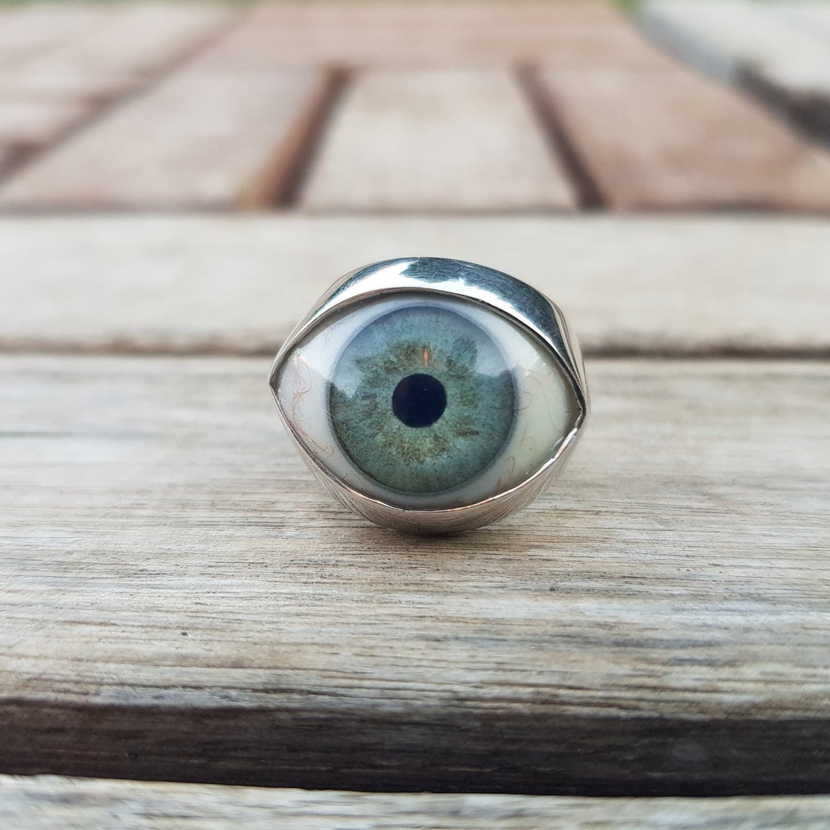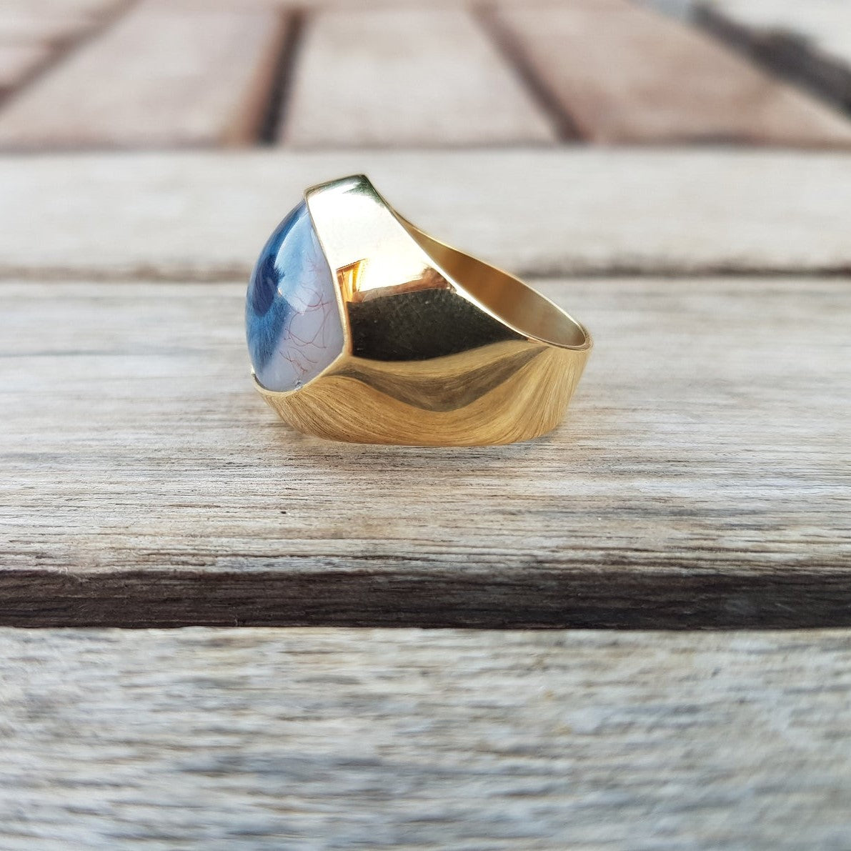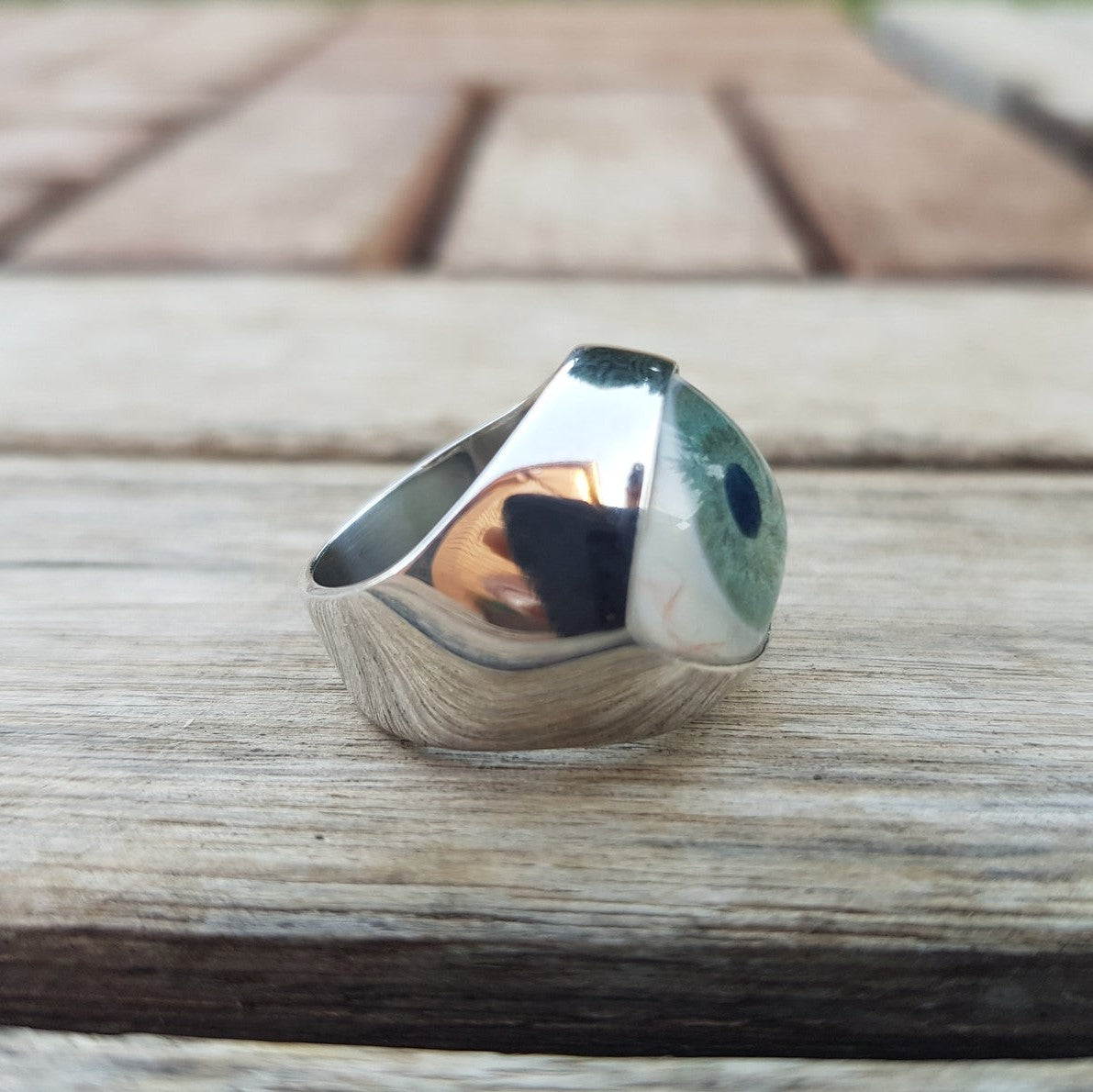 Evil Eye Medium Signet Ring. This beautiful ring is quite a statement. If you love different unique jewelry, then this ring is for you!. This eye ring is made to order in two different materials. This ring is chunky and heavy in both material versions.