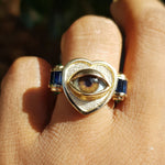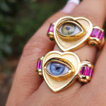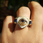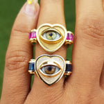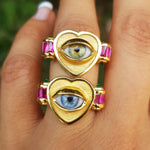 Heart Eye Ring Retro Style. One of our latest designs!. This amazing ring is just breath taking. It was inspired in the retro era (1930s and 1940s), this ring has everything we love, hearts, eyes and red stones!. Made to order in the size and eye color of your choice (choose the eye color from the last picture)
