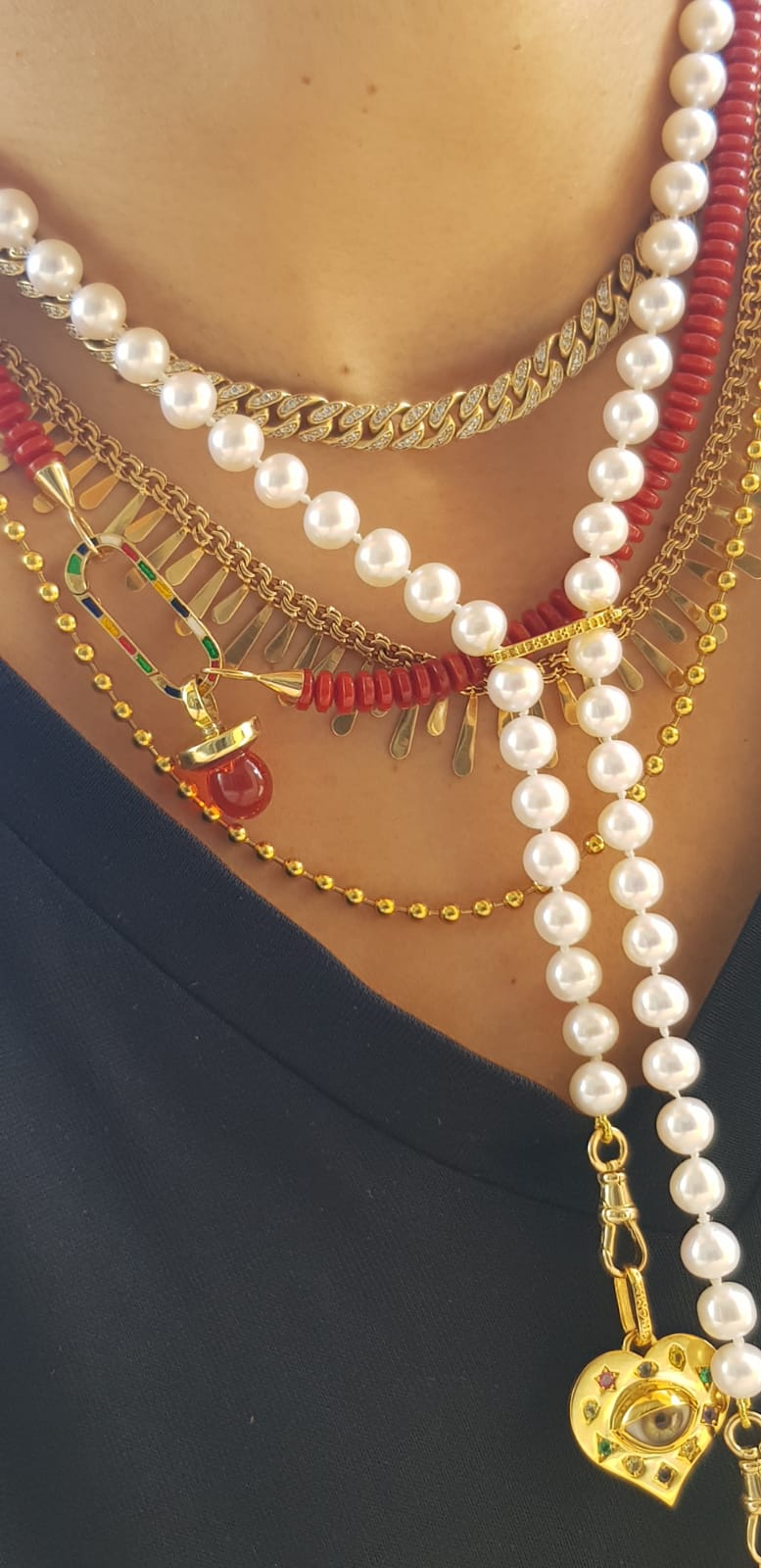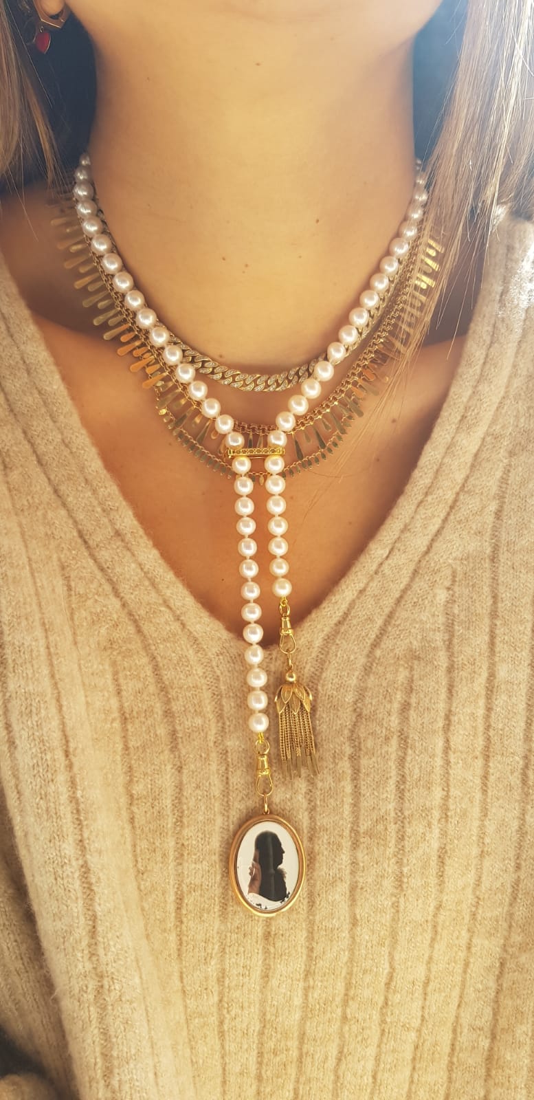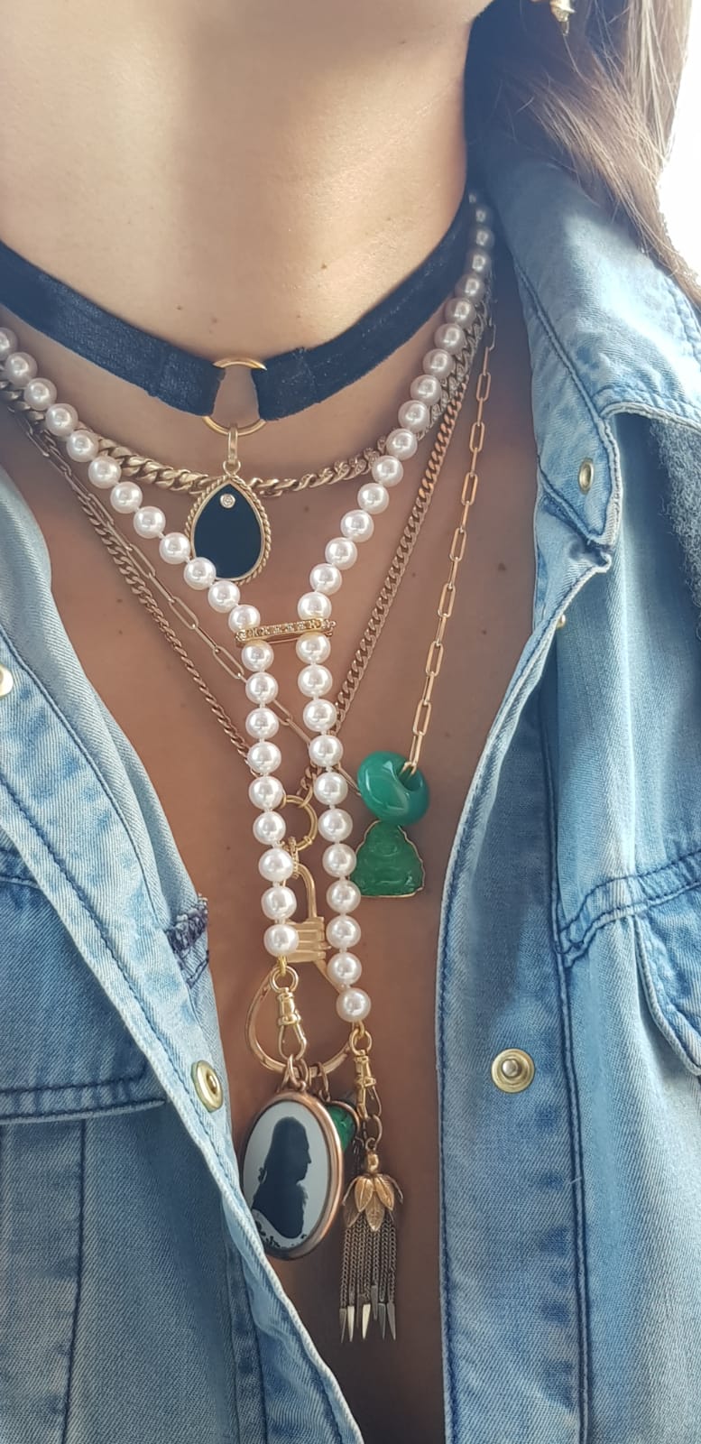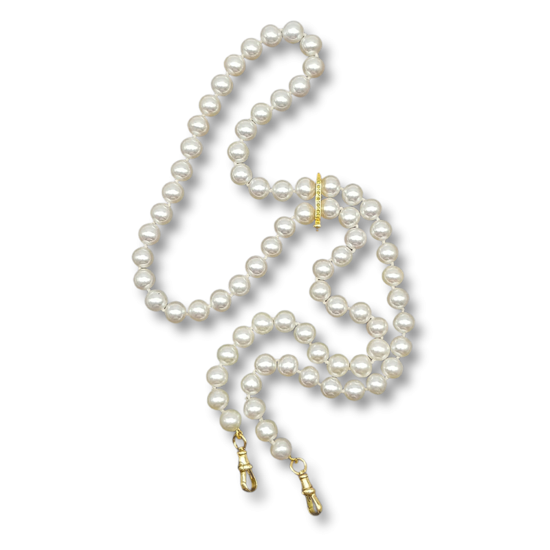 Tie Pearl Necklace. This super cool necklace is made to order. If you have in mind a different length please send us a message as this can be arranged. If you love pearls and want to wear them in a fashionable style this necklace is for you!. It has two dog clasps at each end so you can add your charms to give it your special touch!.
