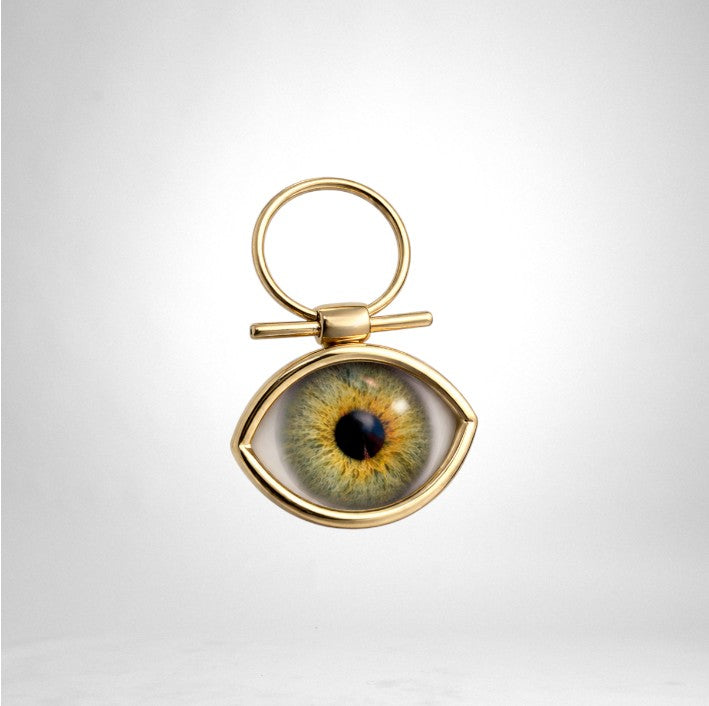 The eye color can be chosen from our available colours. For a small additional fee, we also offer the option to engrave something in the perimeter of the pendant.