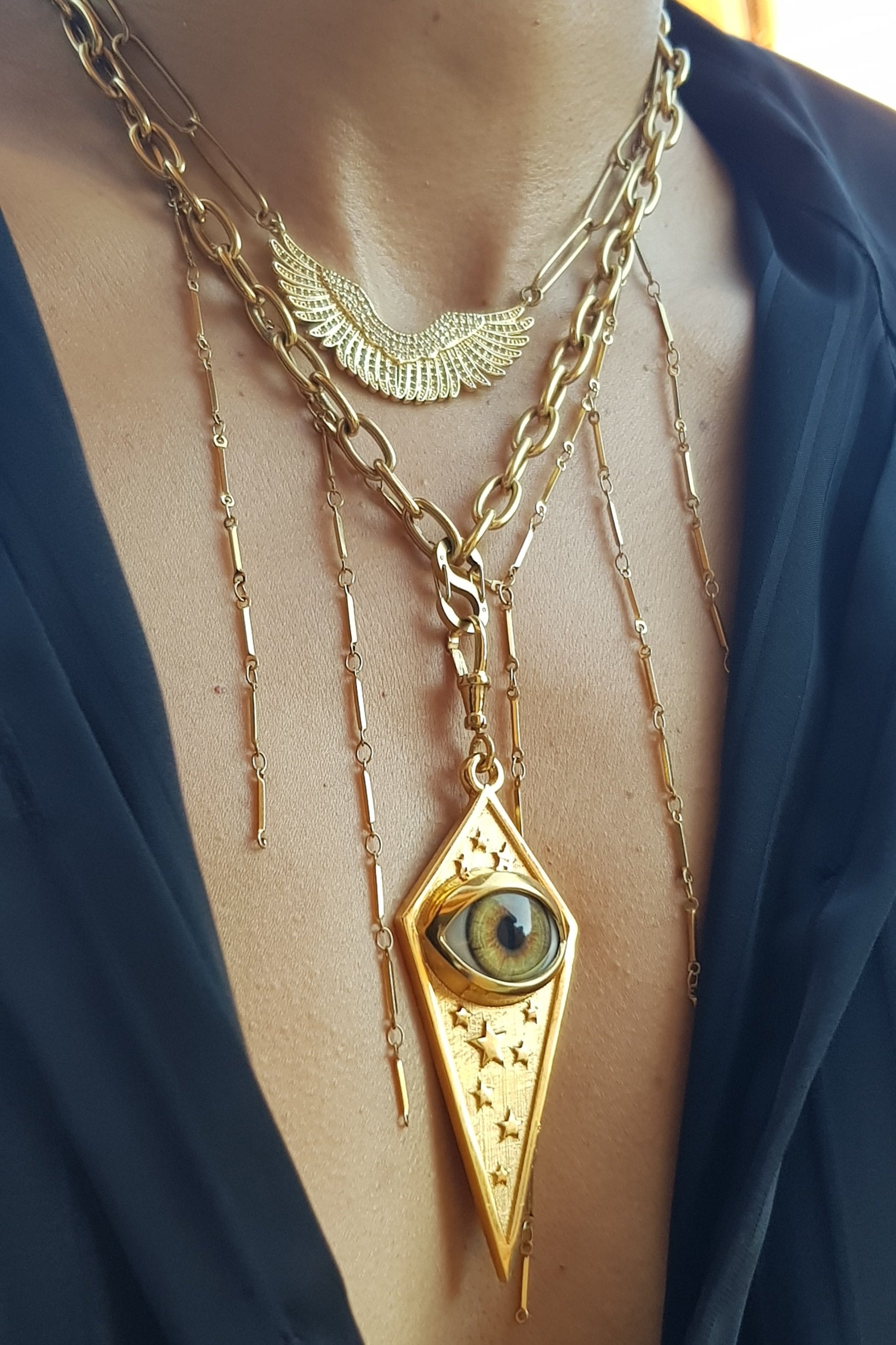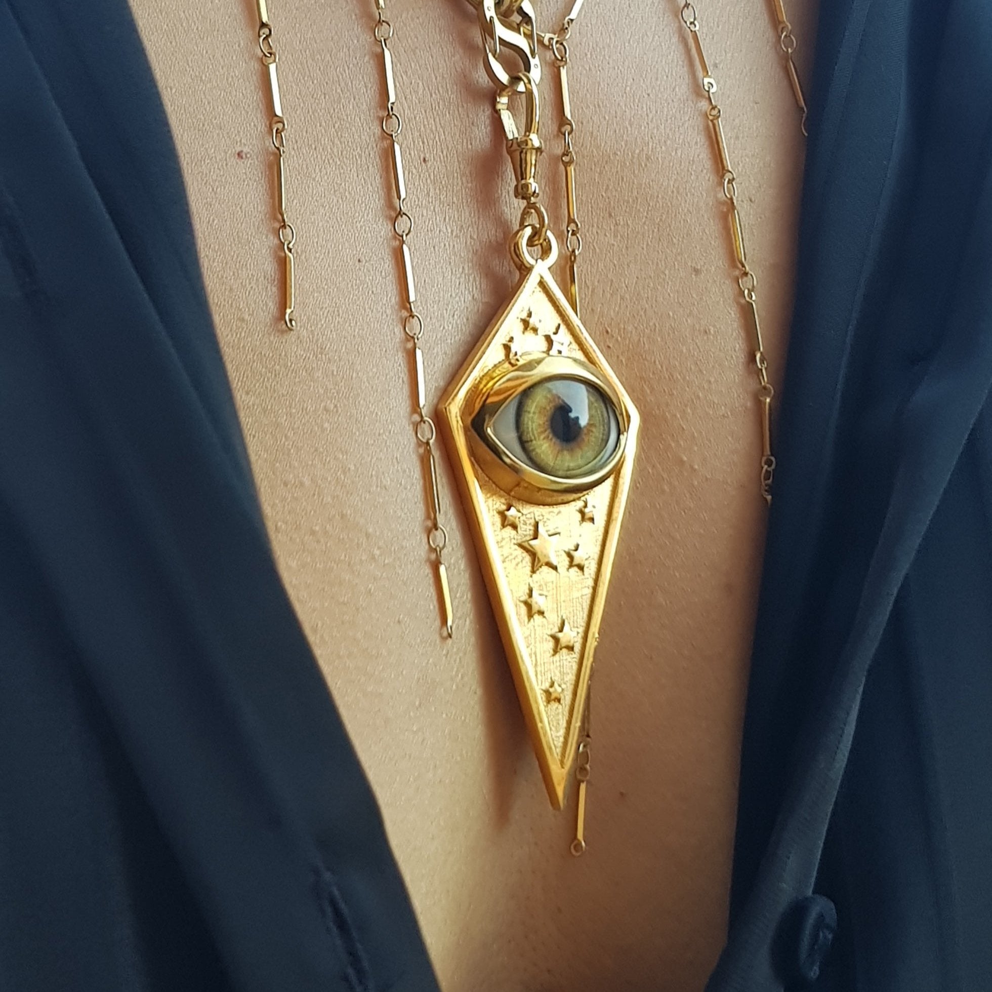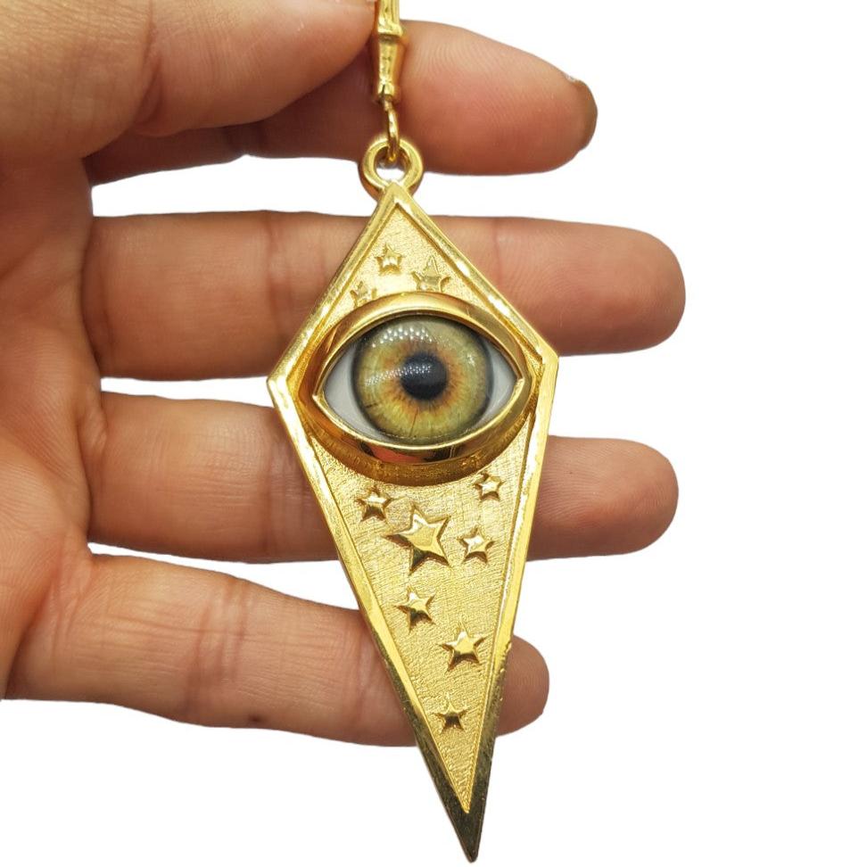 Gold Starry Eye Pendant Charm Rhombus XL Version. This beautiful unique pendant can be made in silver and silver gold plated. This piece is solid. If you love eye jewellery and unique pieces you will fall in love with this one.