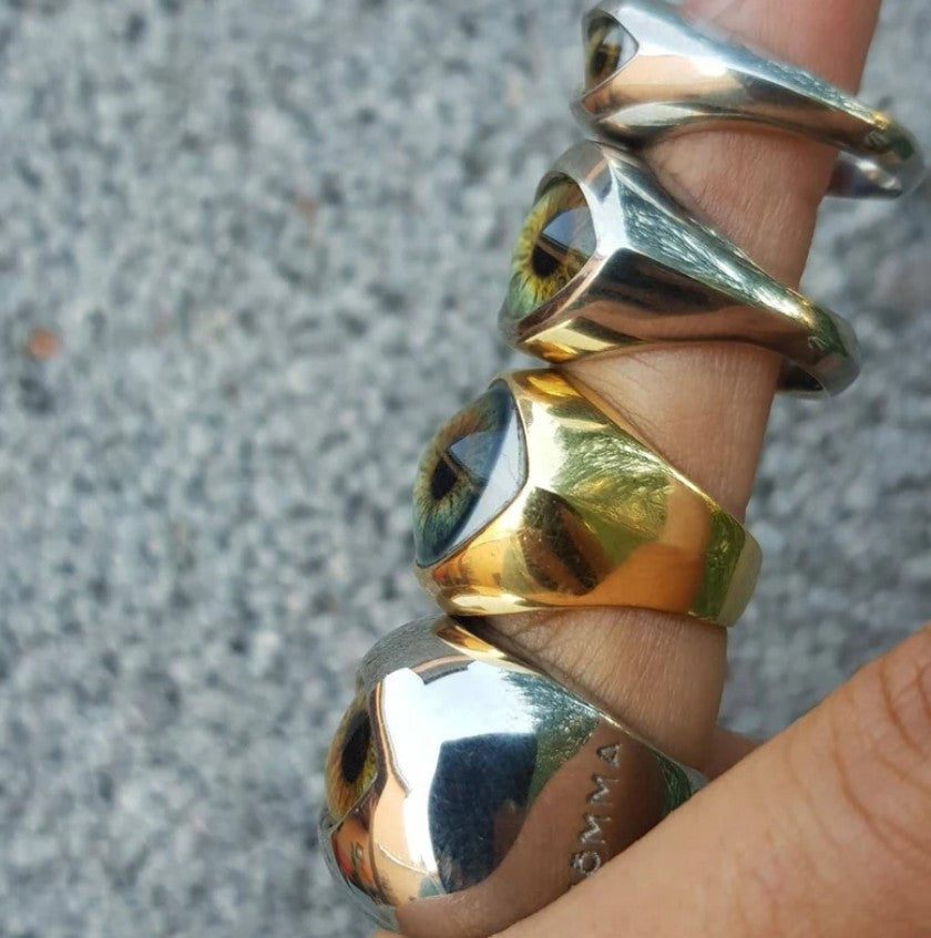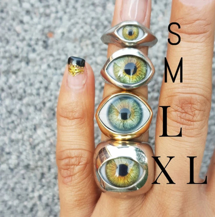 Small Signet Eye Ring. These statement acrylic eye ball beautiful ring is quite an amazing cool gift. This can be your momento mori piece. If you love different unique jewelry, you can choose this one and stack it with other rings for an amazing look!